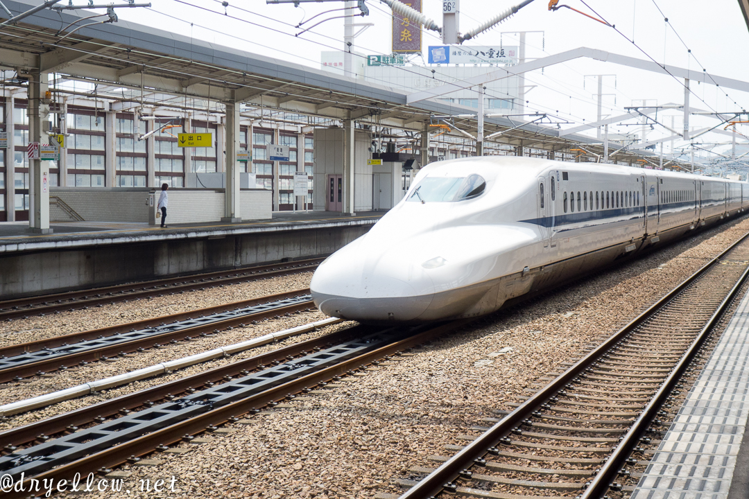 ということでネットで天気予報を見ると午後の15時前後が雨のピークになりそうなので、昼ごはんを食べて新幹線の駅に向かったのでした。残念ながら今日は「500 TYPE EVA」は走らない予定だし、ドクターイエローも昨日走っていますから、今日は全くノーマルな車両ばかりというのを頭にいれ、ひたすら水飛沫をどう撮るかということをイメージしながら・・・。