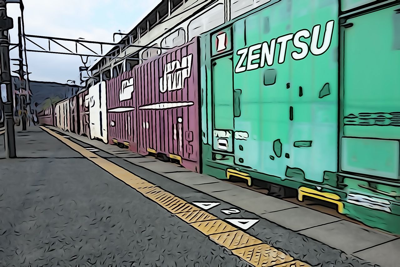 エヴァンゲリオン新幹線を撮影しようと新幹線のホームでウロウロしていたら、初めて生で見る貨物列車が走っているので、何もわからずにシャッターを切りました。