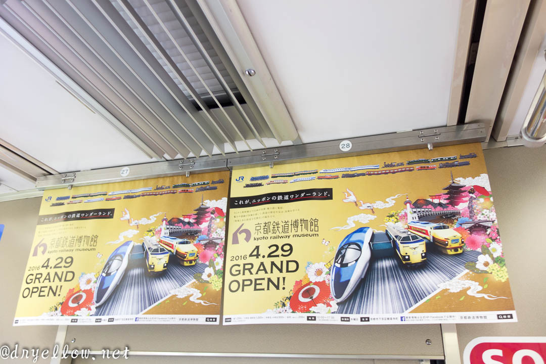 今日は用事があってJRを利用したのですが、その用事を終えて帰宅しようとたまたま乗った電車が、今年の4月29日にオープンしたばかりの京都鉄道博物館のラッピングをした電車でした。