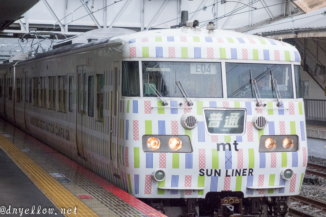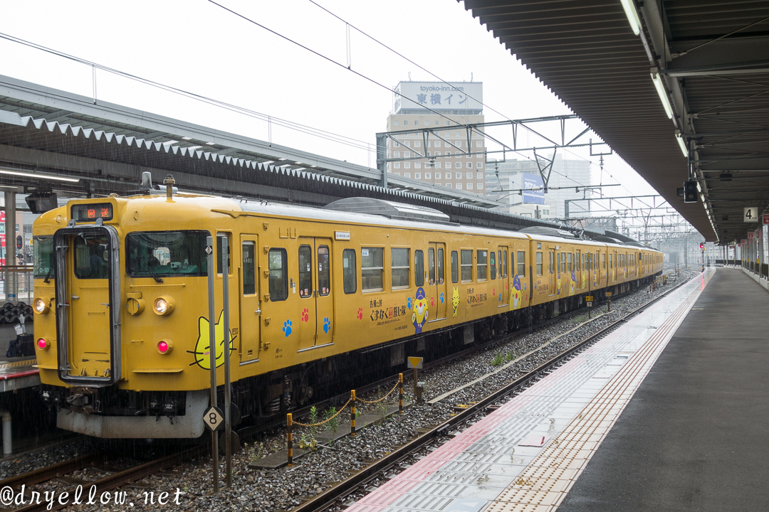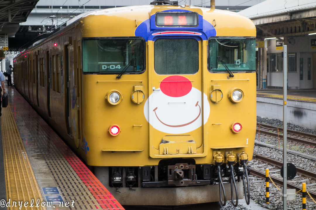朝と夕方だけ旧国鉄時代の電車が走っているのを知っていましたので、小雨のが降る中ようやく動き出した電車たちを見ながら、本命として狙っている「115系ラッピング列車 ふるさとおこし号」を待っていたんですけどね。私が散歩していた時間帯には走ってきてくれませんでした。